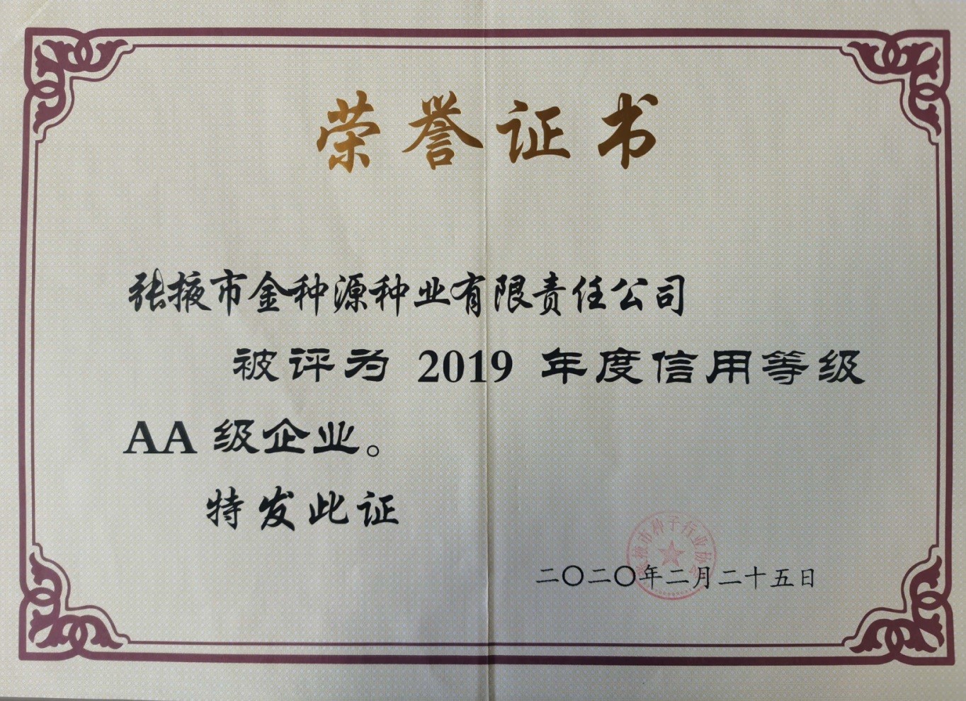 2020年度信用等級AAA級企業(yè)。