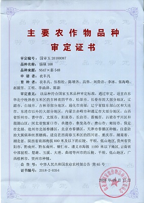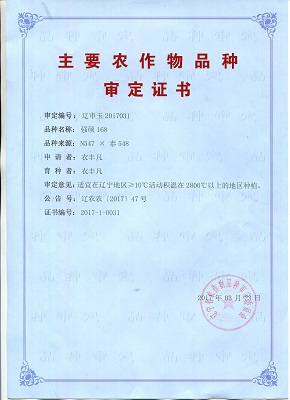 主要農(nóng)作物審定證書-強(qiáng)碩168(遼寧)