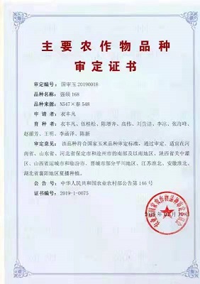 主要農(nóng)作物審定證書-強(qiáng)碩168(國家)