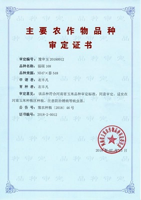 主要農(nóng)作物審定證書-強(qiáng)碩168(河南)
