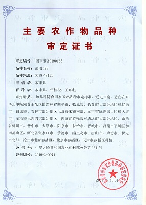 主要農(nóng)作物審定證書-強(qiáng)碩178(國家)