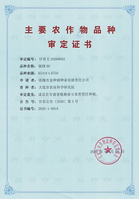 主要農(nóng)作物審定證書-強(qiáng)碩88(甘肅)