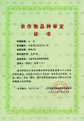 主要農(nóng)作物審定證書-強(qiáng)碩88(遼寧)