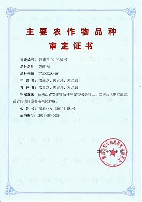 主要農(nóng)作物審定證書-強(qiáng)碩68(陜西)