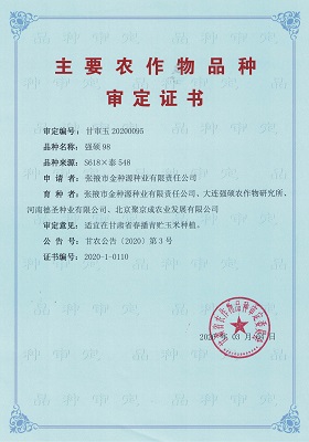 主要農(nóng)作物審定證書-強(qiáng)碩98(甘肅)