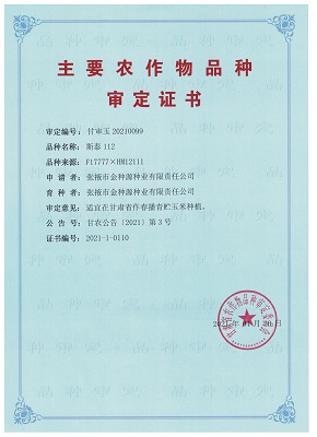 主要農(nóng)作物審定證書-斯泰112(甘肅)