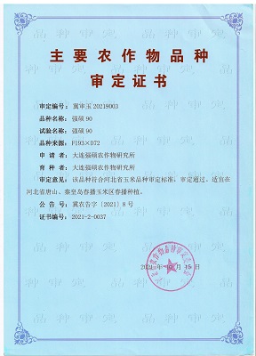主要農(nóng)作物審定證書-強(qiáng)碩90(河北)