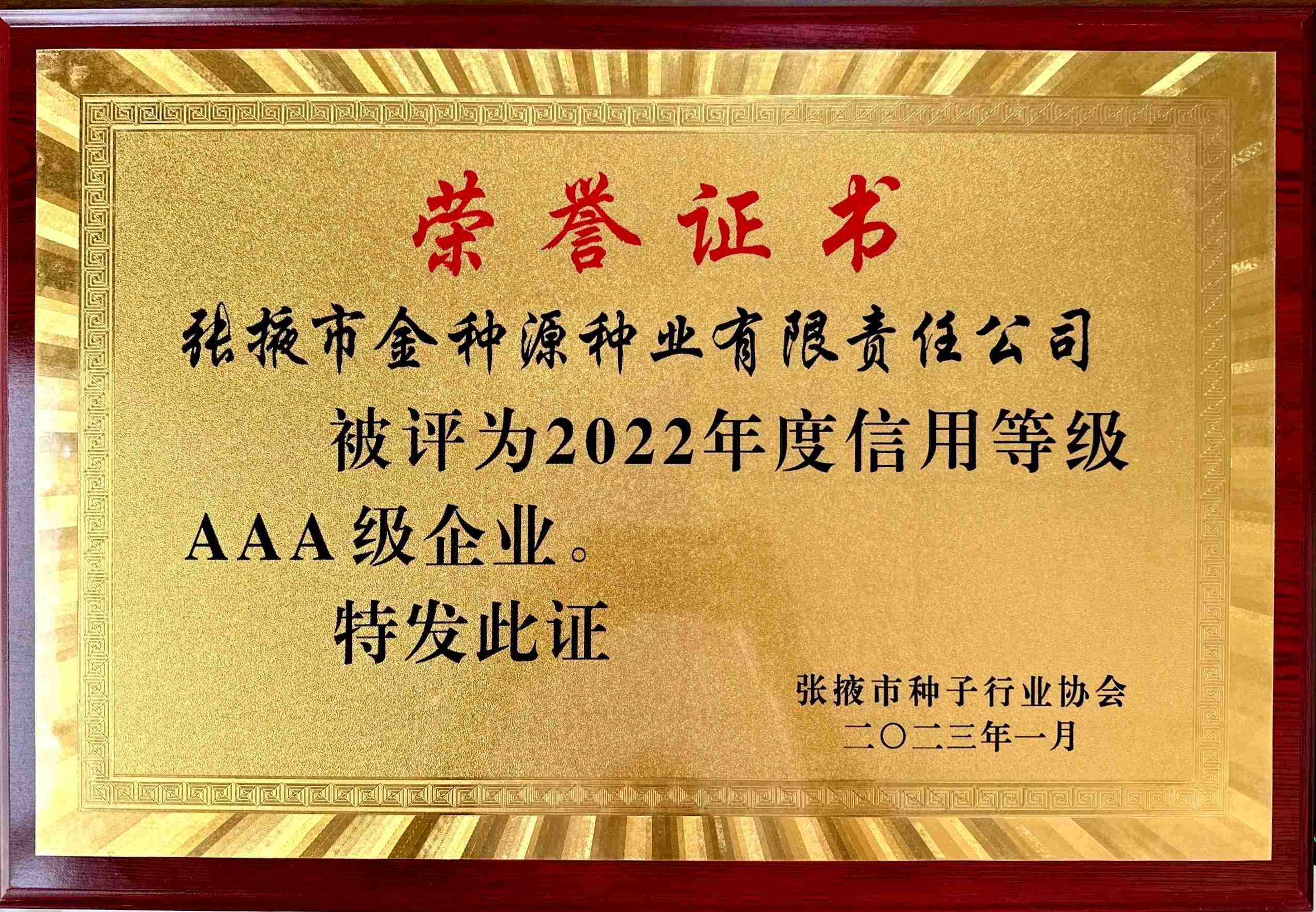 2022年度信用等級AAA級企業(yè)。